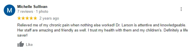 Our chiropractor, Dr. Teresa Larson, and our staff will work relentlessly alongside you to get to the bottom of any symptoms that you may be experiencing so that we can determine a course of action moving forward to reduce or get rid of the symptoms entirely.